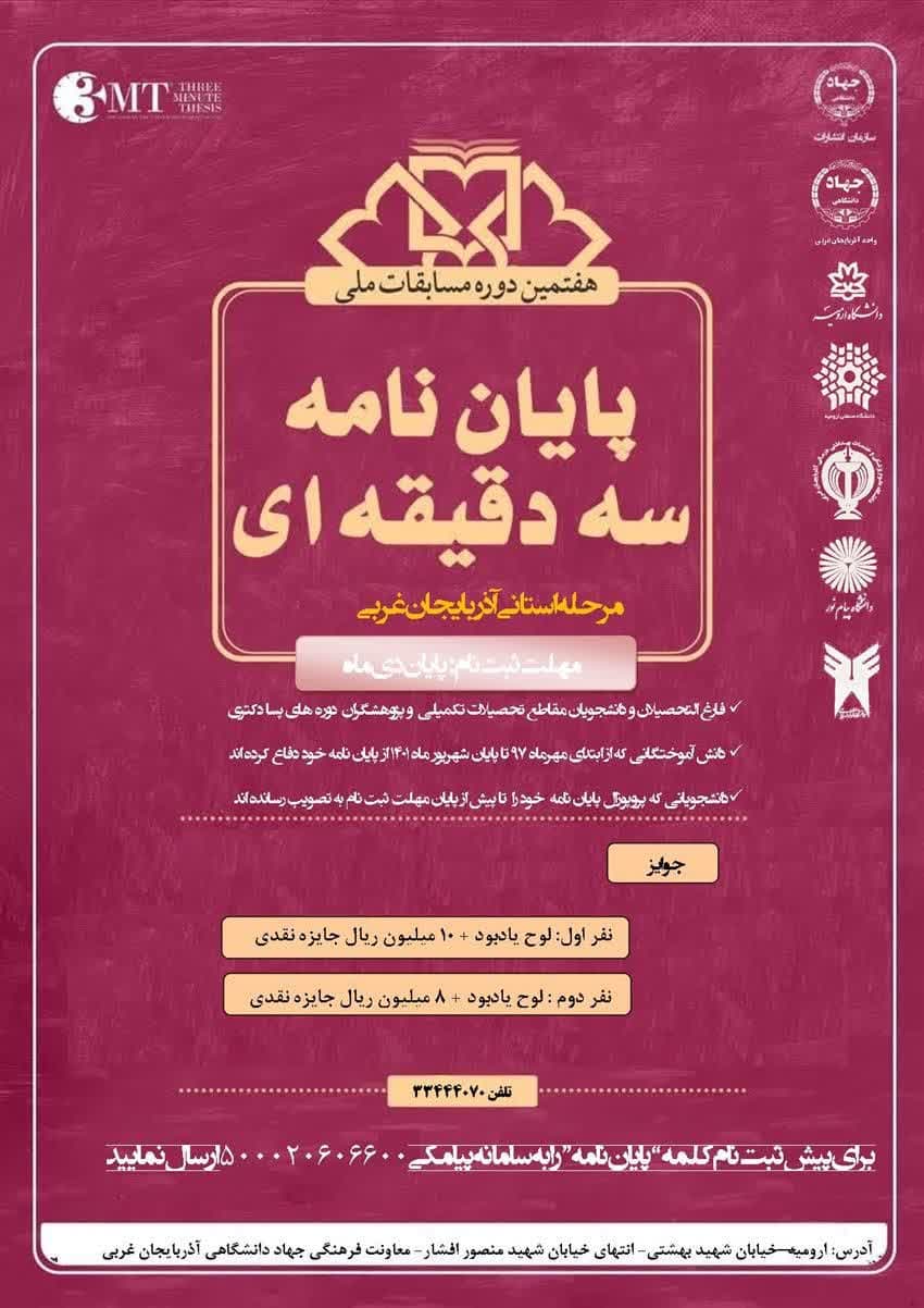 اطلاعیه برگزاری هفتمین دوره مسابقات ملی پایاننامه سه دقیقهای